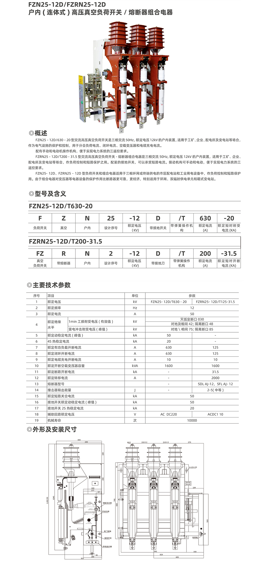 FZRN25-12D/T630-20高壓真空負(fù)荷開關(guān)概述: