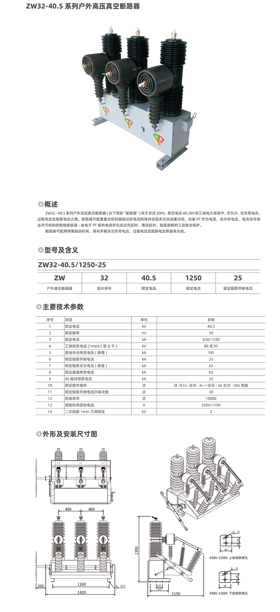 ZW32-40.5系列戶外柱上高壓真空斷路器