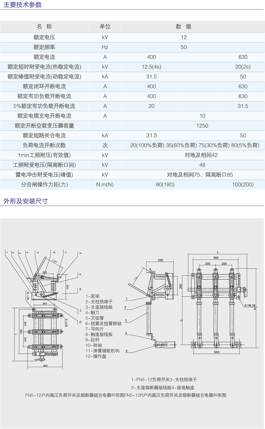 FN5-12RD/630A戶內(nèi)高壓負(fù)荷開關(guān)/熔斷器組合電器