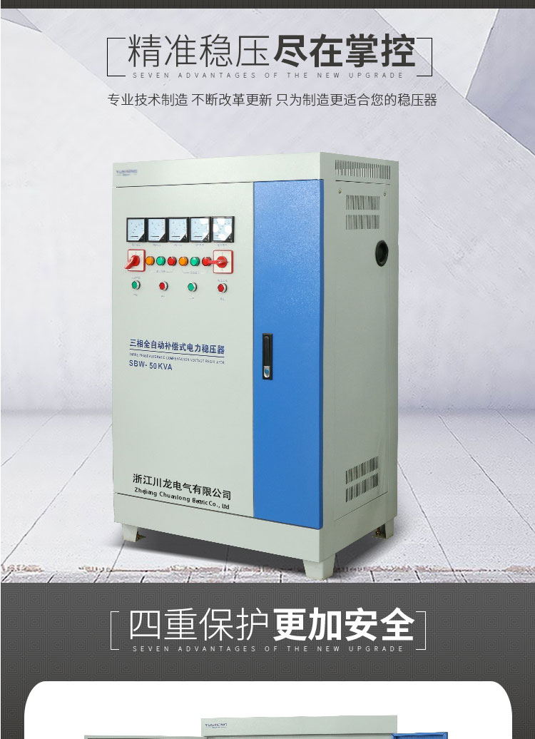SBW三相補償式電力穩(wěn)壓器是使輸出電壓穩(wěn)定的設備。穩(wěn)壓器由調壓電路、控制電路、及伺服電機等組成。當輸入電壓或負載變化時,控制電路進行取樣、比較、放大,然后驅動伺服電機轉動,使調壓器碳刷的位置改變,通過自動調整線圈匝數(shù)比,從而保持輸出電壓的穩(wěn)定。